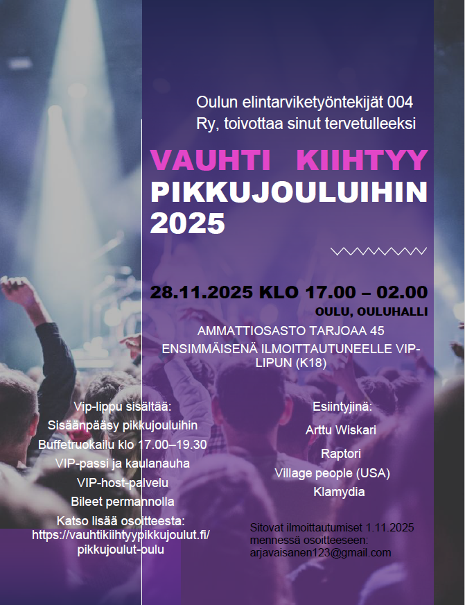 Oulun Elintarviketyöntekijät 004 ry:n sivuille!