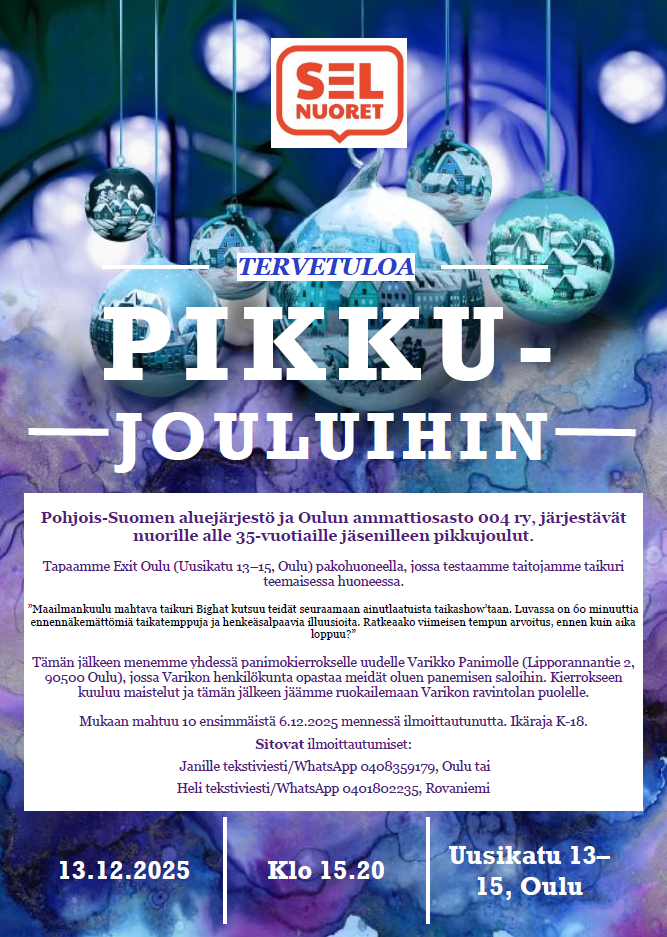 Nuorten pikkujoulut alle 35- vuotiaille jäsenille